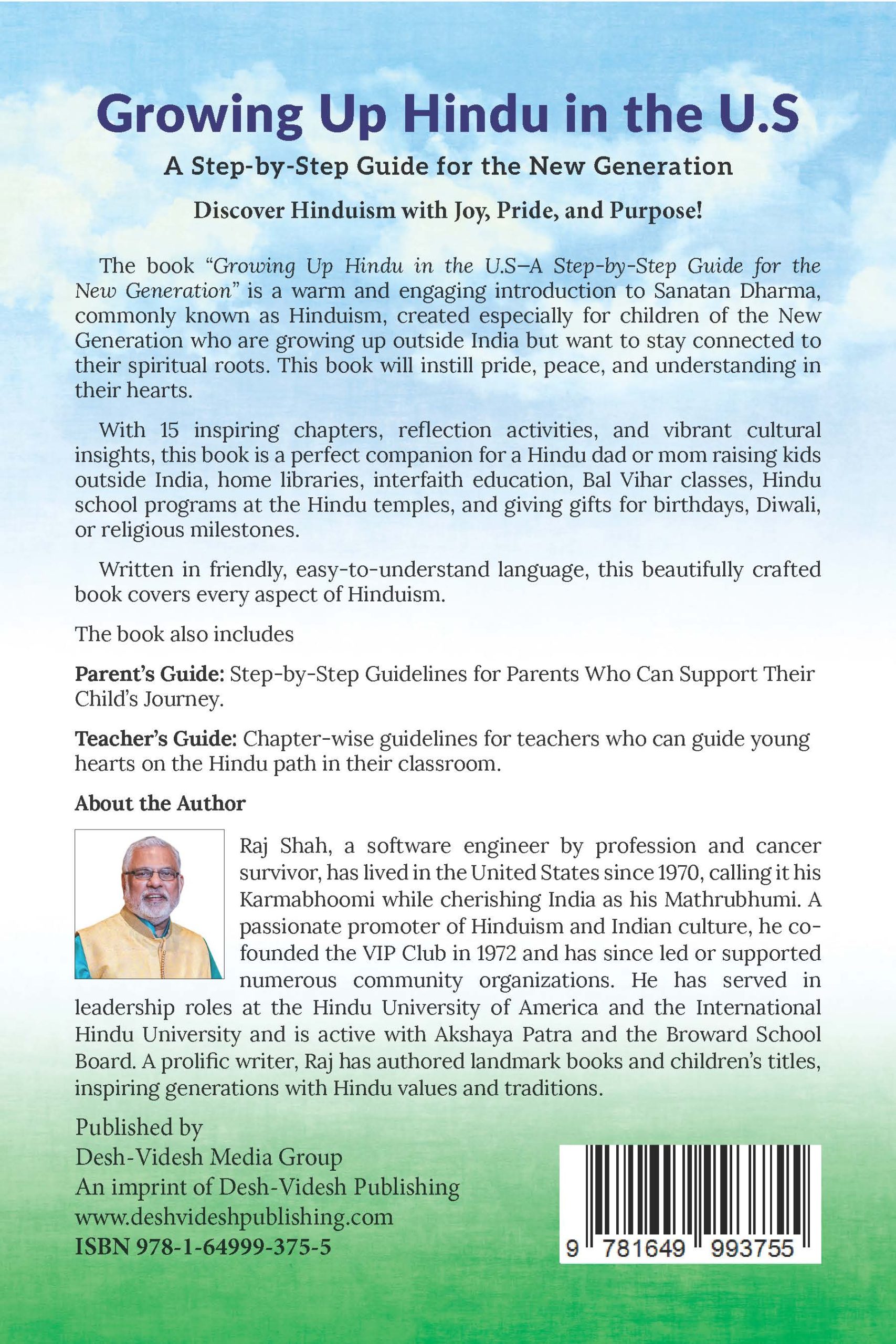 The book “Growing Up Hindu in the U.S—A Step-by-Step Guide for the New Generation” is a warm and engaging introduction to Sanatan Dharma, commonly known as Hinduism, created especially for children of the New Generation who are growing up outside India but want to stay connected to their spiritual roots. This book will instill pride, peace, and understanding in their hearts.